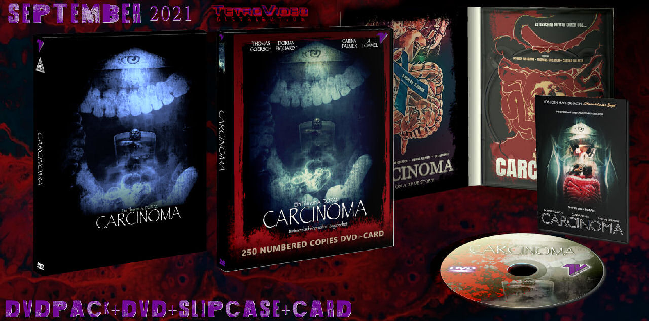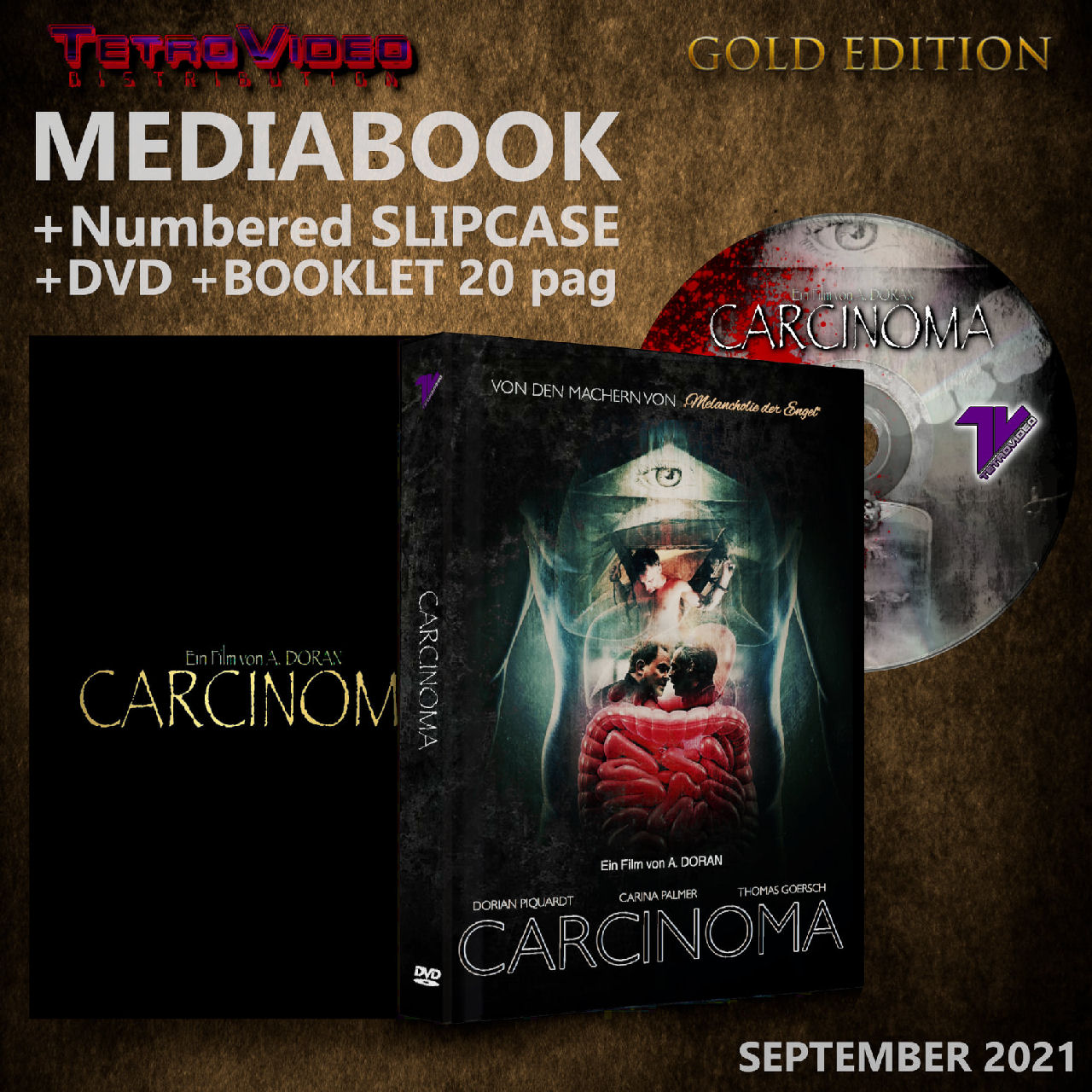 Carcinoma and the extended edition of Melancholie der Engel are coming in a limited/numbered DVDPACK edition (Slipcase + DVD + Card) and in a ultralimited/numered Mediabook Gold edition (Slipcase + DVD + 20 pag booklet) with french, italian and english subtitles.