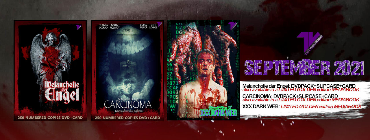 Extreme films Carcinoma, Melancholie der Engel and XXX Dark Web coming to home video via TetroVideo on september 6