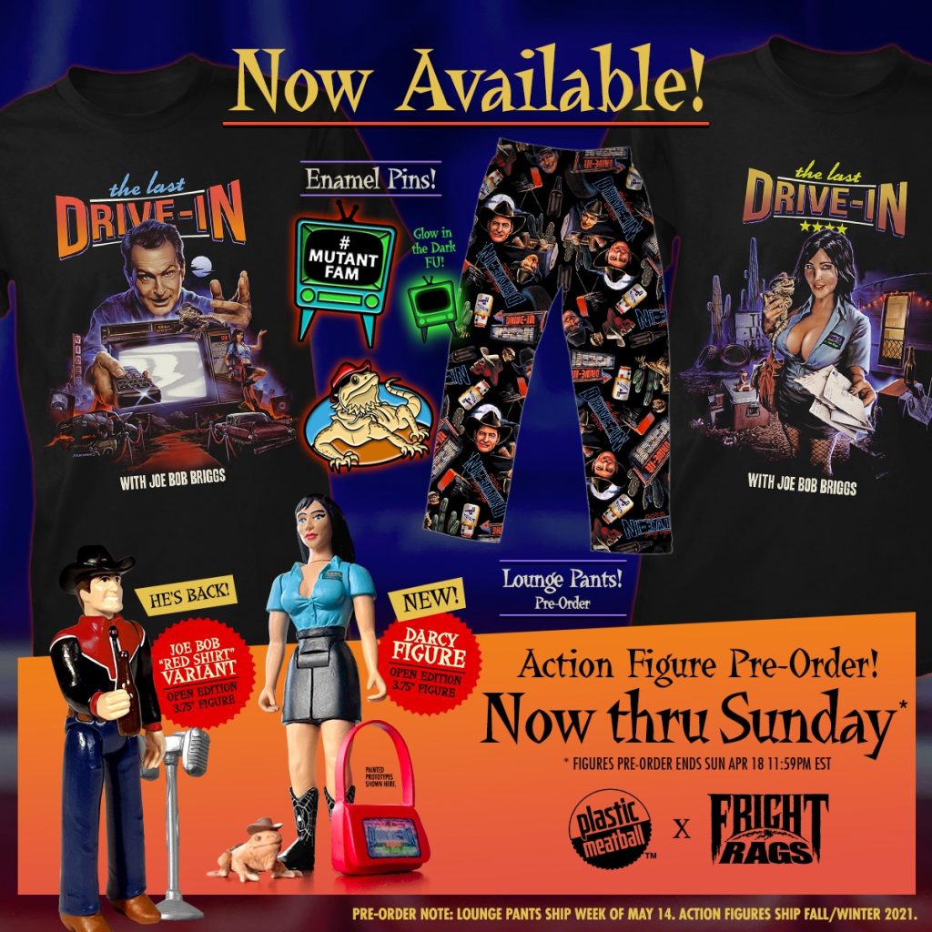 JOE BOB BRIGGS Action Figures Drive Into Fright-Rags, Plus SHAUN OF THE DEAD Merch Available Now at Fright-Rags.com Not only is influential horror host Joe Bob Briggs back with a new season of The Last Drive-In on Shudder, but he has...