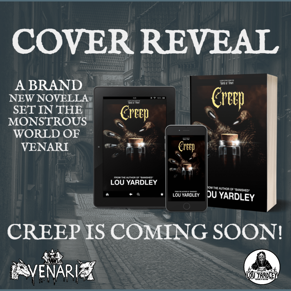 New cover-art revealed for the novella ‘Creep’ Indie author Lou Yardley is taking further steps into her monstrous dark fantasy world of Venari with her new novella “Creep”. Creep is a loose prequel to her novel, Banished, which was released last...
